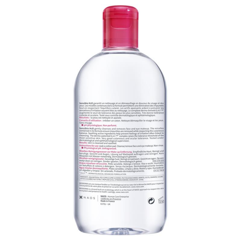 Bioderma Sensibio H20 soothing micellar water cleanser for sensitive skin 500ml