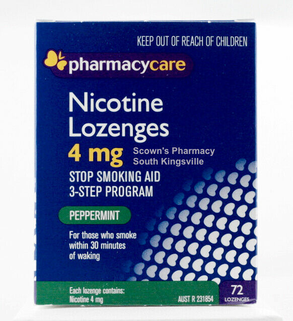 Pharmacy Care Nicotine 4 mg 72 Lozenges Amcal Peppermint Stop Smoking Aid