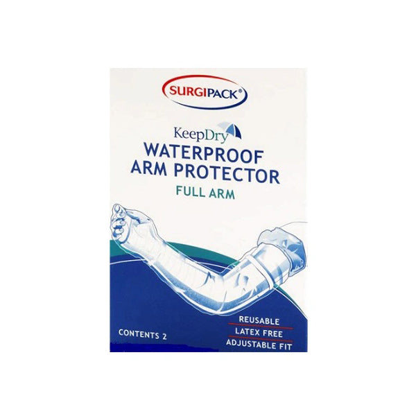 SurgiPack 6172 Keep Dry Waterproof Full Arm Protector, patented design that covers full the arm and is one size fits all. It is lightweight and convenient way to protects casts and bandages against water exposure whilst showering or taking part in light water activity. Reusable, latex free, adjustable fit. It is lightweight and comes in one size fits all shape.