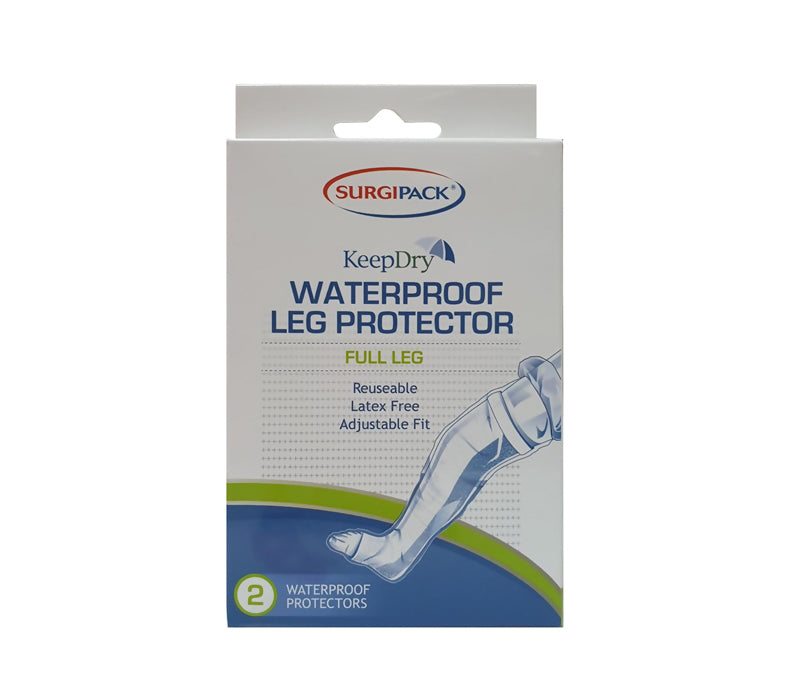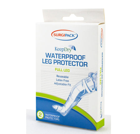 Surgipack 6174 Keep Dry Waterproof Full Leg Protector protects casts and bandages against water exposure. Keep dry full leg protector, waterproof and is a convenient and useful way of protecting your casts & bandages from water while showering or undertaking light water related activity.