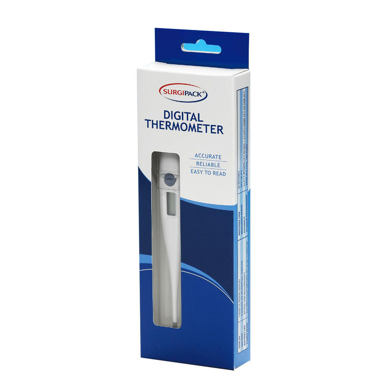 Surgipack 6344 Digital Thermometer is easy to read, reliable and accurate. It beeps when the temperature has been reached and there is a memory function that records the last temperature recorded.