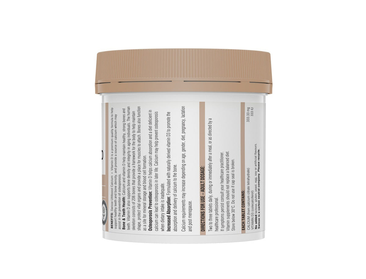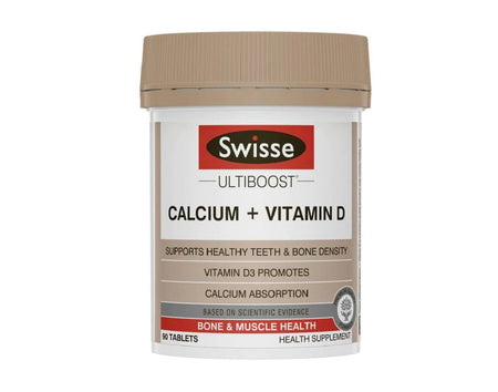 Swisse Ultiboost Calcium + Vitamin D is a premium quality formula to help support healthy teeth and bone density, and provide a source of calcium which may assist in the prevention of osteoporosis when dietary intake is inadequate.