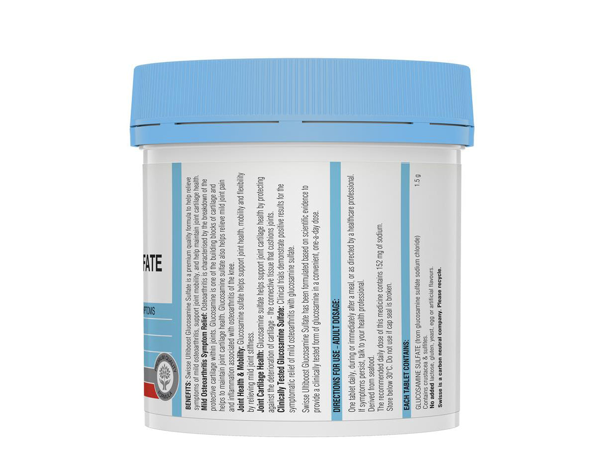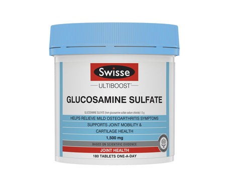 Swisse Ultiboost Glucosamine Sulfate is a premium quality formula to help relieve symptoms of mild osteoarthritis, support joint mobility, and help maintain joint cartilage health.