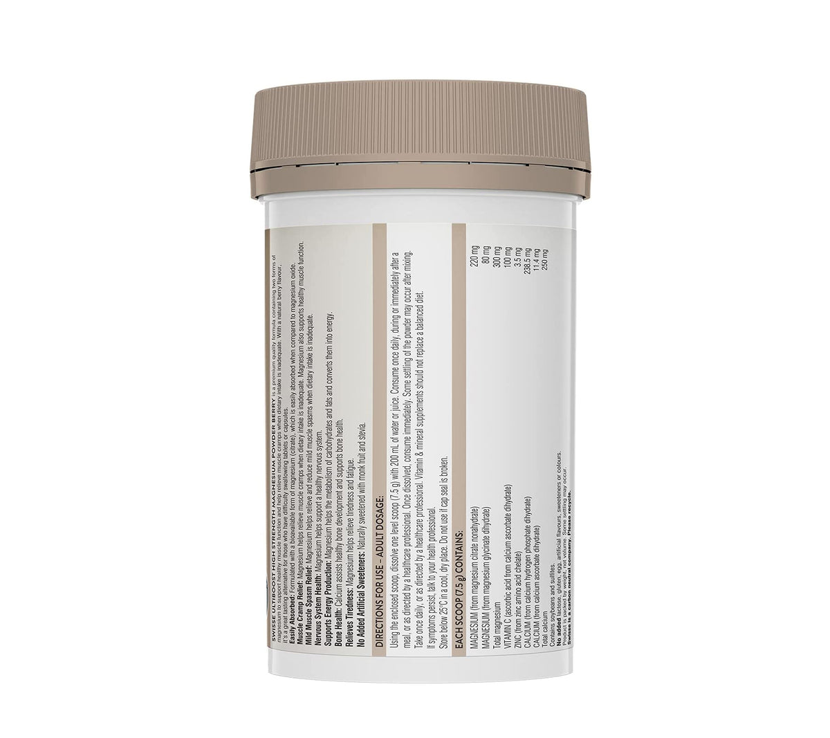 Factors such as diet and excess alcohol intake may reduce magnesium levels. Swisse Ultiboost High Strength Magnesium Powder Berry has been formulated based on scientific evidence to support a physically active lifestyle.