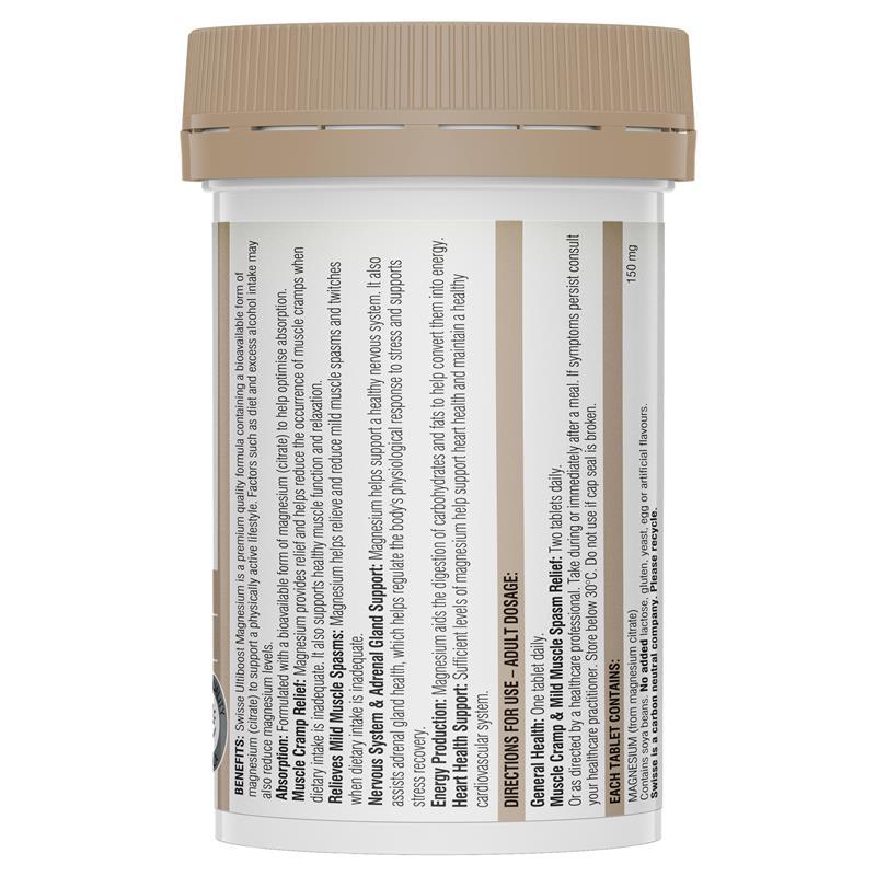 Swisse Ultiboost Magnesium is a premium quality formula containing a bioavailable form of magnesium (citrate) for a physically active lifestyle. Factors such as insufficient dietary intake may affect magnesium levels in the body.