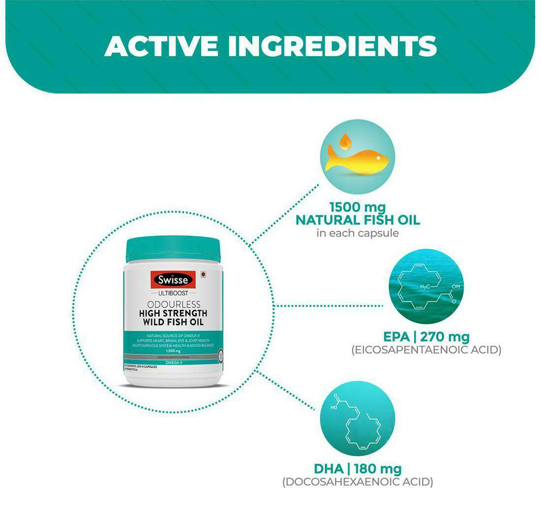 Swisse Ultiboost Odourless High Strength Wild Fish Oil has been formulated based on scientific evidence to support general health and wellbeing in a high strength dose.