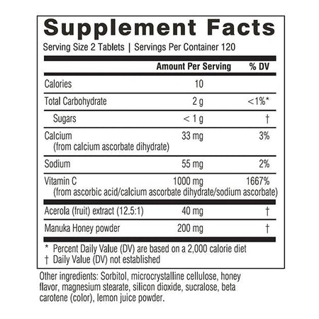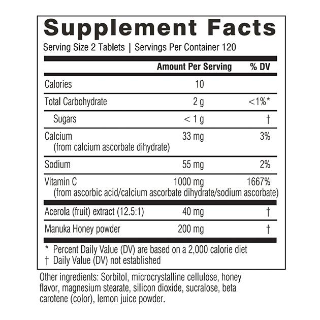 Swisse Ultiboost Vitamin C + Manuka Honey has been formulated based on scientific evidence to provide a natural honey and lemon flavoured chewable tablet which supports immune health.