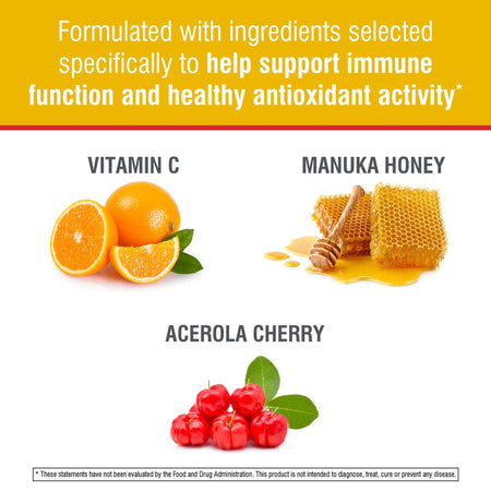 Swisse Ultiboost Vitamin C + Manuka Honey is a premium quality, great -tasting formula containing vitamin C and New Zealand Manuka honey. Vitamin C helps to reduce the duration and severity of common cold symptoms, supports immune system health and decreases free radical damage to body cells.