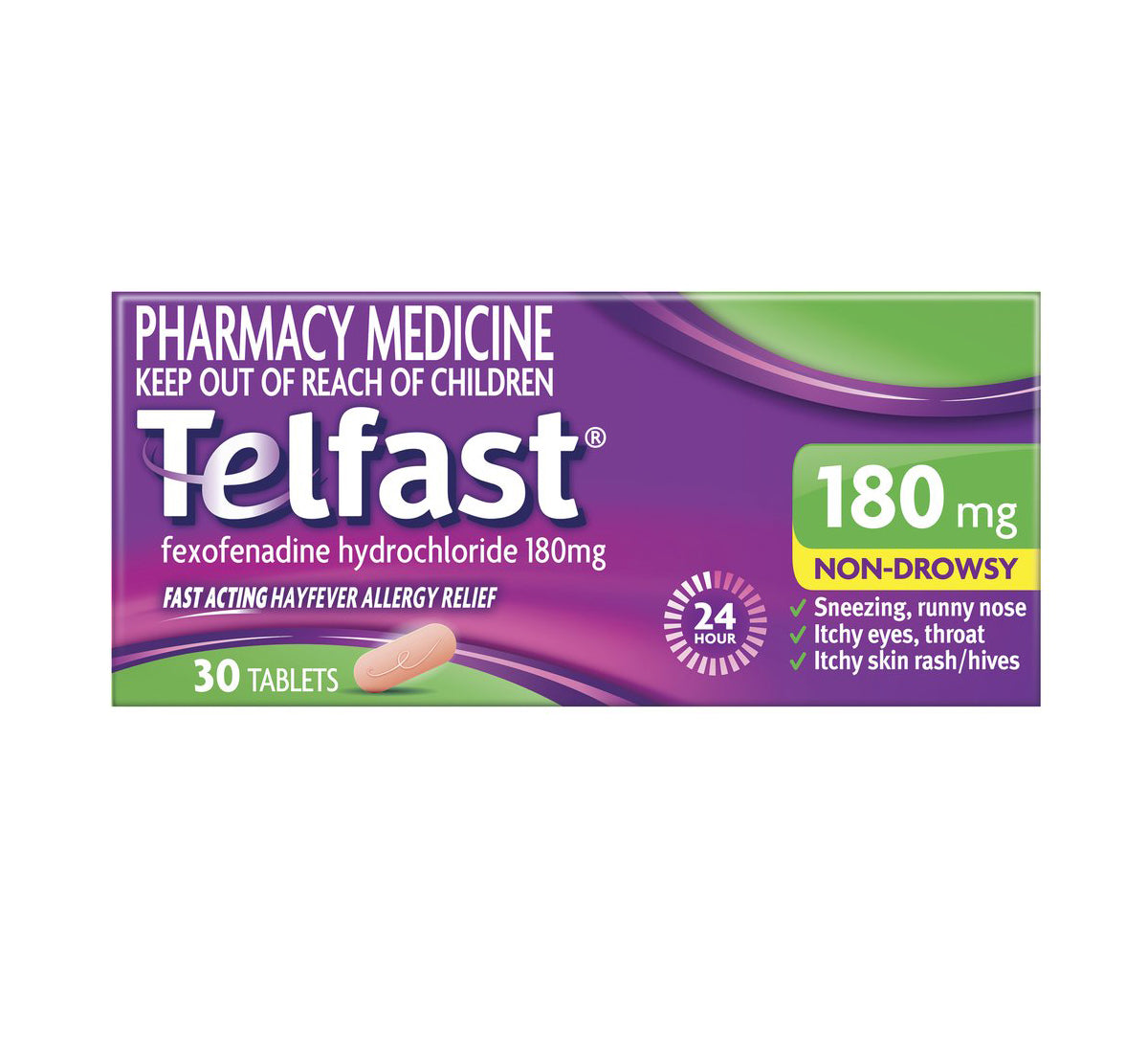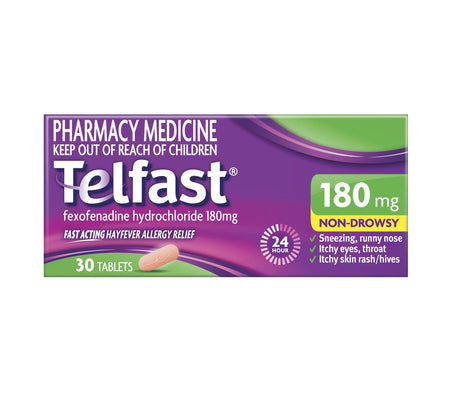 Telfast 180mg Hayfever Allergy Relief - Fast, non drowsy relief of the symptoms of hayfever allergies and itchy skin rash or hives. With just one tablet a day you can get on with your day without worrying about your allergies.
