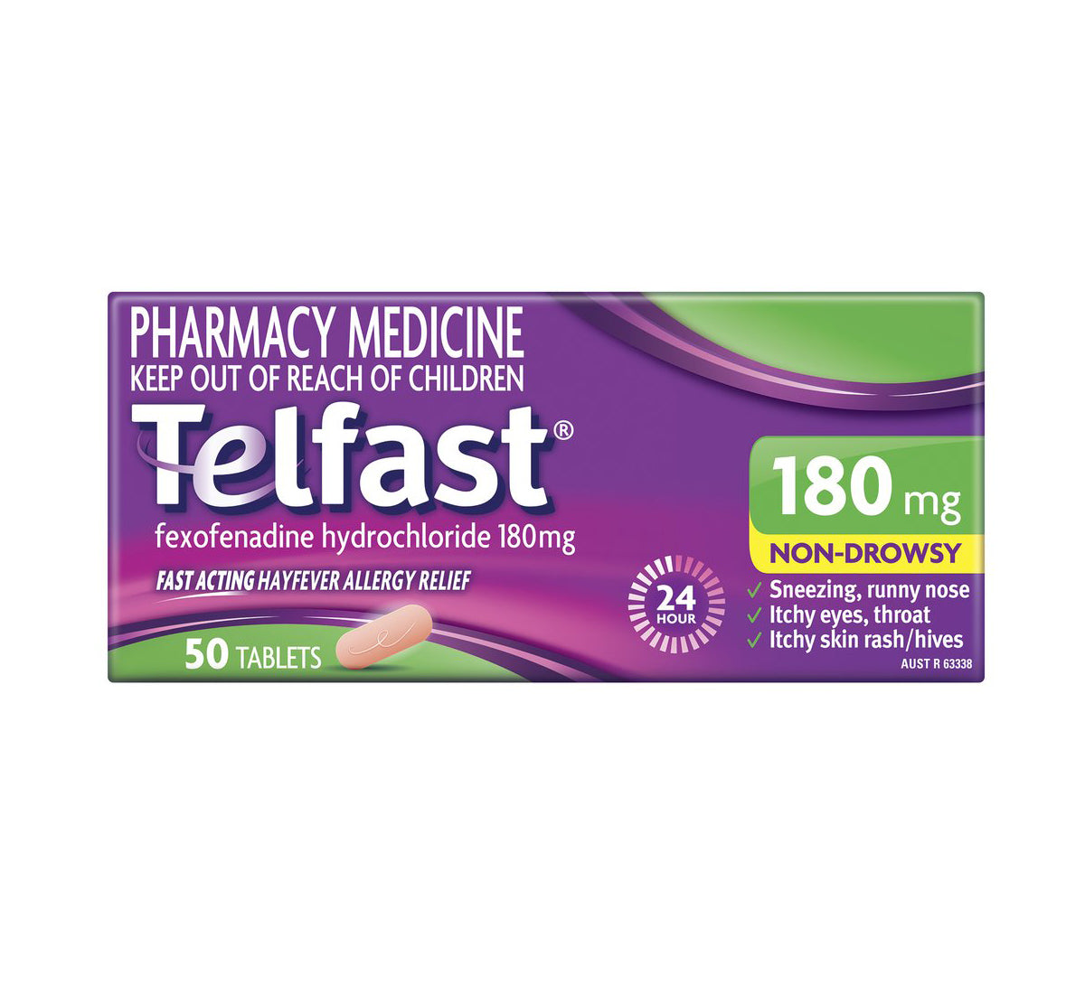 Telfast 180mg Hayfever Allergy Relief - Fast, non drowsy relief of the symptoms of hayfever allergies and itchy skin rash or hives. With just one tablet a day you can get on with your day without worrying about your allergies.