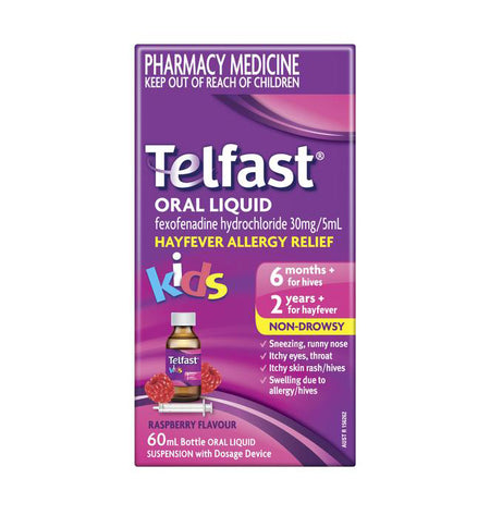 Telfast Oral Liquid Antihistamine For Kids - Fast, non drowsy relief of the symptoms of hayfever and year round allergies. Twice daily dosing allows you to dose flexibly.