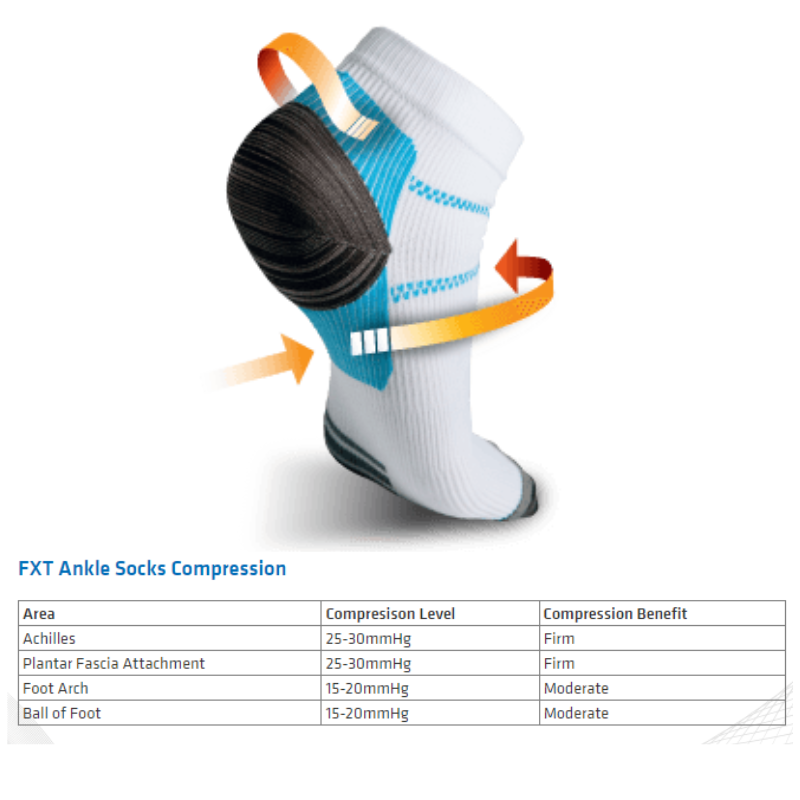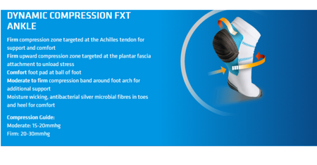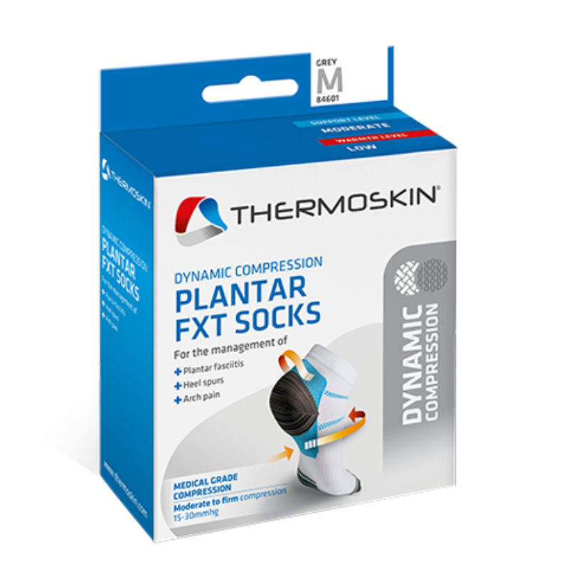 Thermoskin Dynamic Compression Plantar FXT Socks Ankle is designed with targeted compression zones to aid in the pain management and relief from plantar fasciitis, heel spurs and arch pain. Ideal for sports or those on their feet all day.