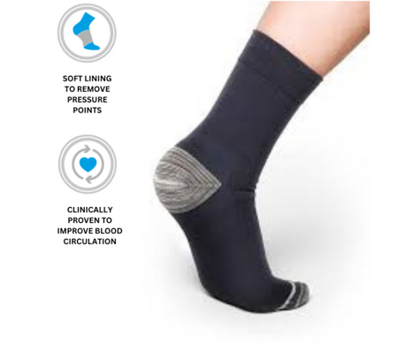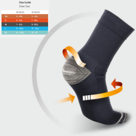 Thermoskin FXT Crew Compression Socks is designed with targeted compression zones to aid in the pain management and relief from plantar fasciitis, heel spurs and arch pain. Ideal for those on their feet all day.
