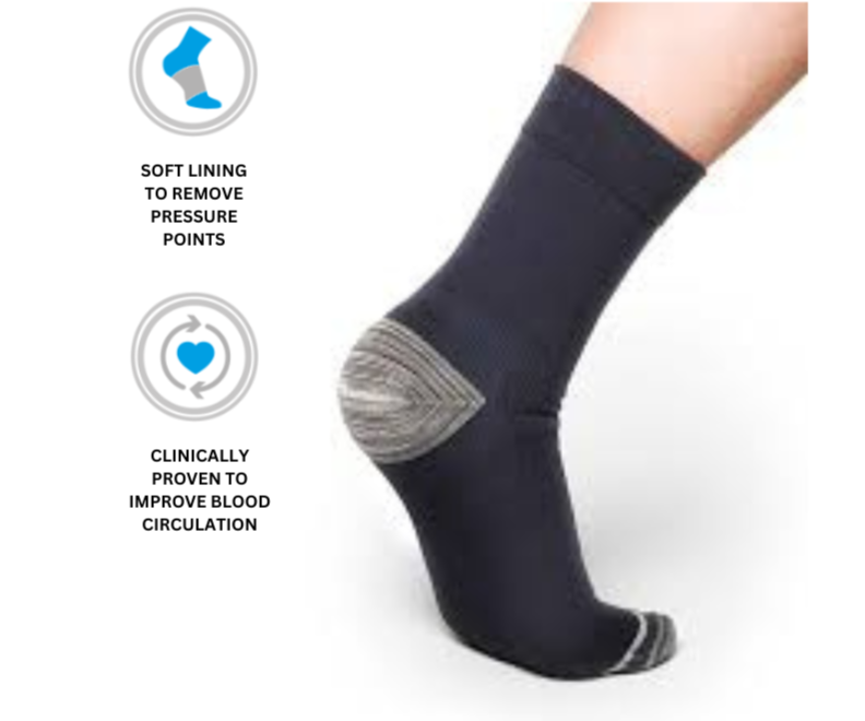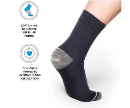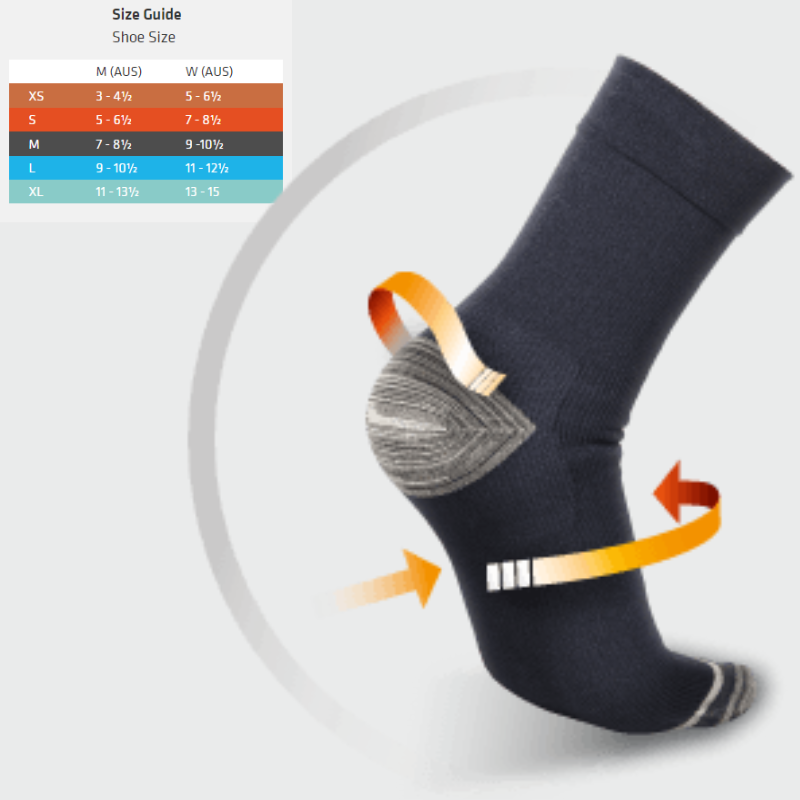 Thermoskin FXT Crew Compression Socks is designed with targeted compression zones to aid in the pain management and relief from plantar fasciitis, heel spurs and arch pain. Ideal for those on their feet all day.