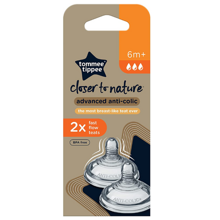 We offer different flow rates to keep up with your growing baby. Every baby is different but as a guide we suggest slow flow for 0+months, medium flow for 3+ months and fast flow for 6+ months. Advanced Anti-Colic teats are only compatible with Advanced Anti-Colic bottles.