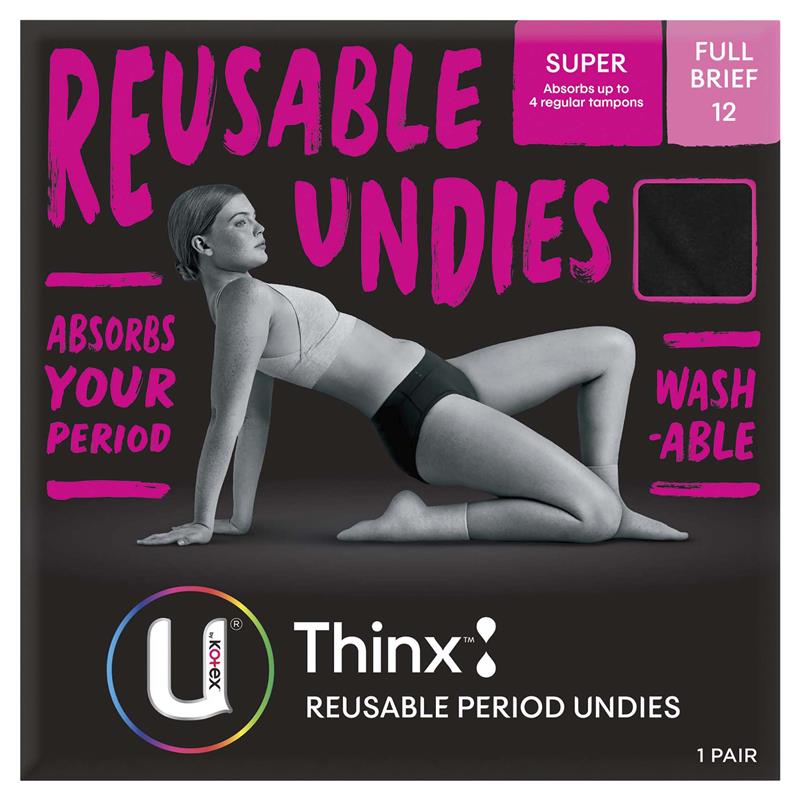 U By Kotex Thinx Reusable Period Briefs Undies Super are the perfect alternative to single use periods products. Comfortable real underwear made with cotton that keeps you protected throughout the day.