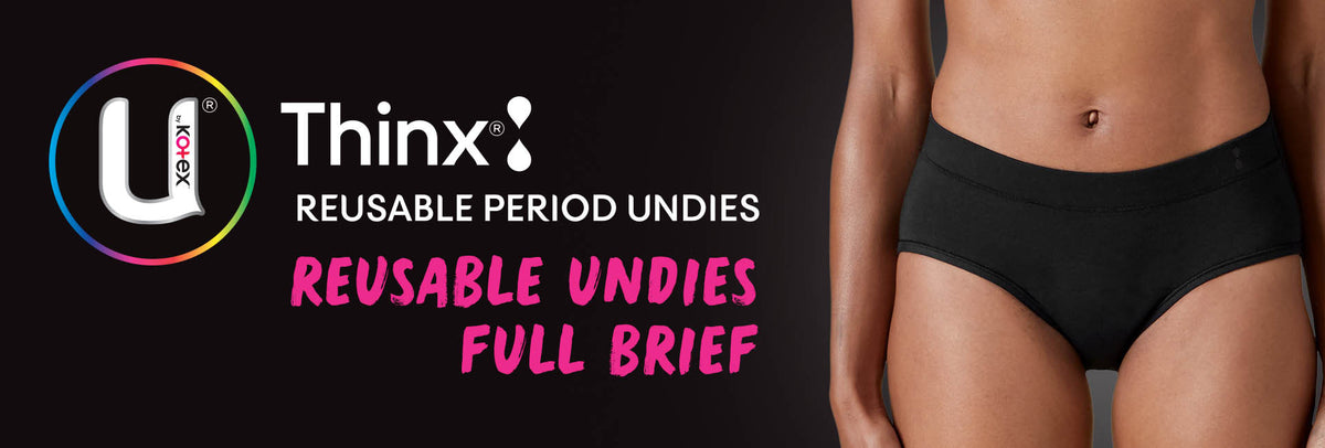U By Kotex Thinx Reusable Period Briefs Undies Super are the perfect alternative to single use periods products. Comfortable real underwear made with cotton that keeps you protected throughout the day.