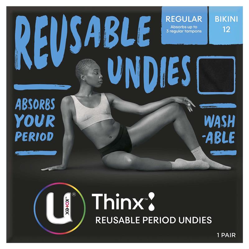 U By Kotex Thinx Reusable Period Undies Bikini Cut Regular, finally here! We are so proud to introduce our new U By Kotex Thinx Reusable Period Undies. We've partnered with global period undies experts, Thinx to bring you our perfect alternative to single-use periods products.