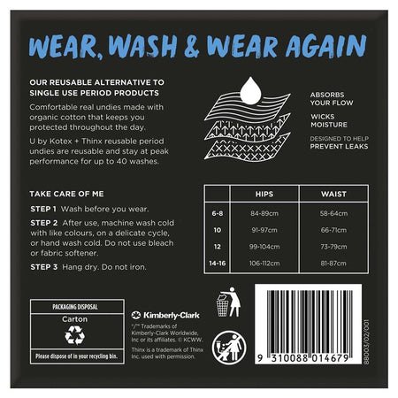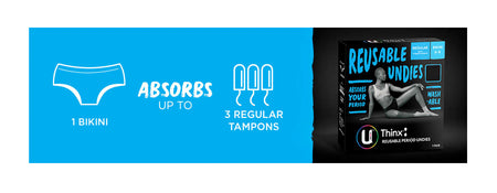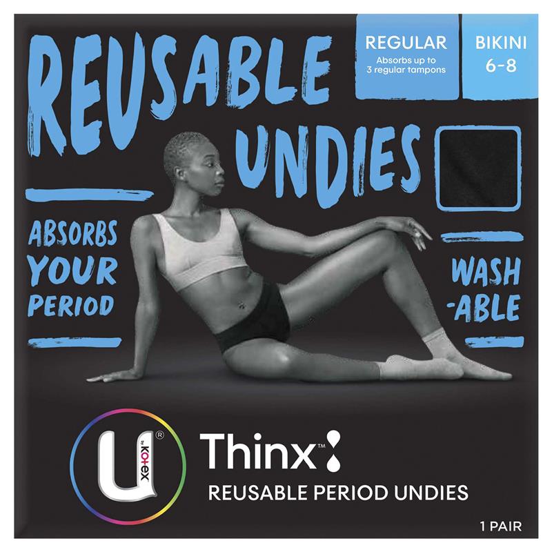 U By Kotex Thinx Reusable Period Undies Bikini Cut Regular, finally here! We are so proud to introduce our new U By Kotex Thinx Reusable Period Undies. We've partnered with global period undies experts, Thinx to bring you our perfect alternative to single-use periods products.