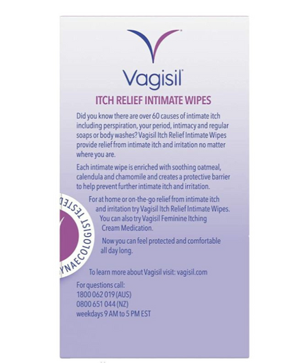 All Vagisil Wipes are especially designed for the unique needs of intimate skin, gynaecologist tested and gentle enough for daily use. Only Vagisil Itch Relief Intimate Wipes give fast comforting relief from itch while also creating a protective barrier to help prevent further itch and irritation. 12 individually wrapped disposable wipes.