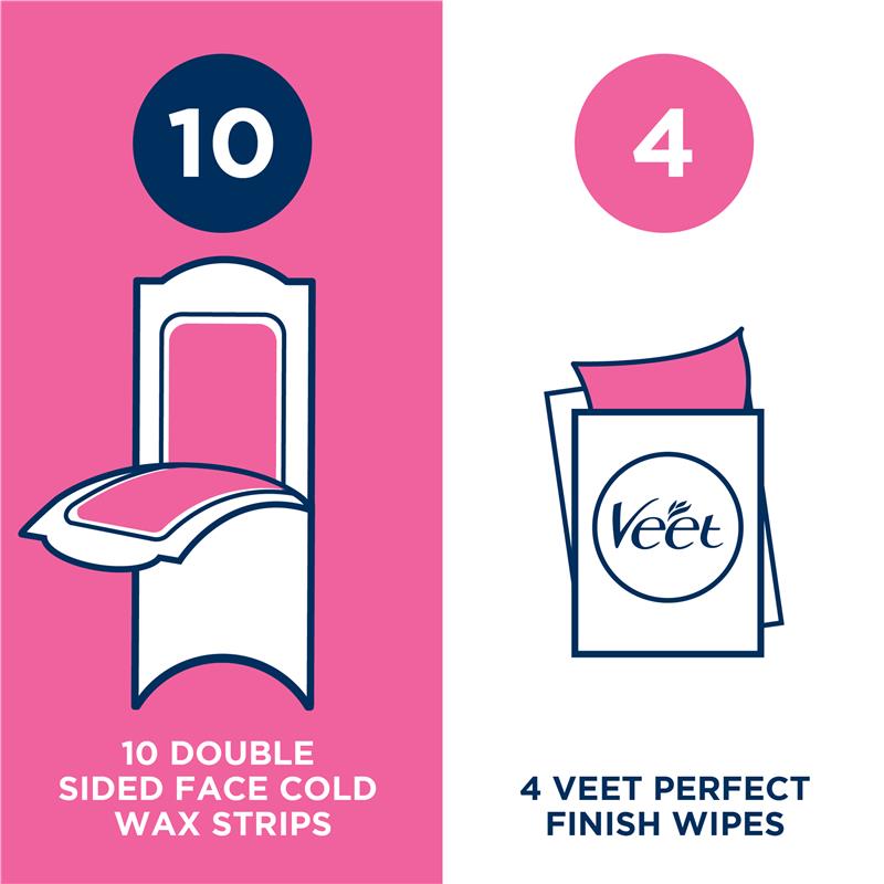 Veet Easy-Gel Face Wax Strips 20 Strips with 4 Perfect Finish Wipes