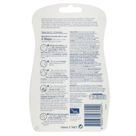 Veet Natural Inspirations Shower Cream Grape Seed Oil Hair Removal 150ml