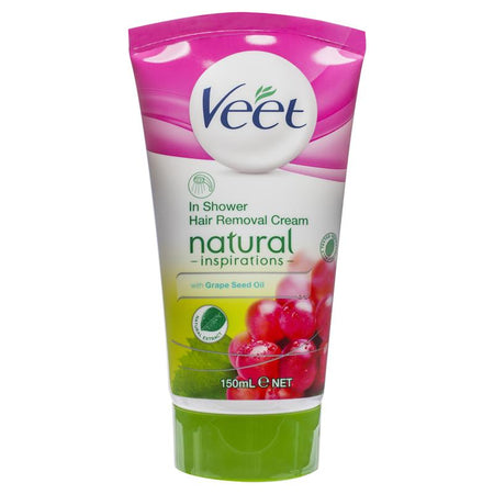 Veet Natural Inspirations Shower Cream Grape Seed Oil has been designed to fit in with your busy routine: with a unique combination of water-resisting ingredients, it works while you shower so you can get on with your day. Our Natural Inspirations formula is enriched with Grape Seed Oil. So you’ll have not just smooth, but cared-for skin – and hair regrowth feels softer, too.