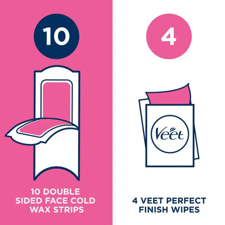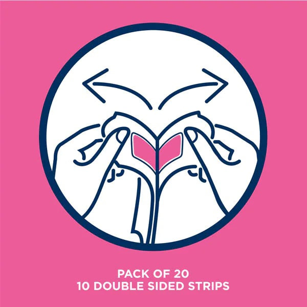 - Pack Contains – 20 wax strips packaged as 10 double sided strips: Just peel apart to use. Special, ready-to-use easy grip tab helps you develop expert technique to remove hair from the roots in one easy move