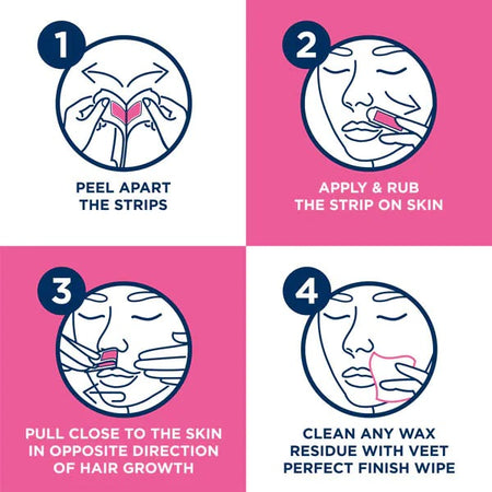 - Easy-Gelwax Technology – Distinctive gel actively grips the shortest hairs. With repeated use, Veet face Wax Strips give you fewer, finer and softer hairs growing back. Get instantly exfoliated skin