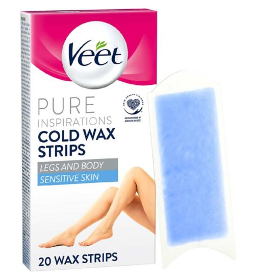Veet Pure Hair Removal Cold Wax Strips Legs and Body Sensitive Skin 20 Strips