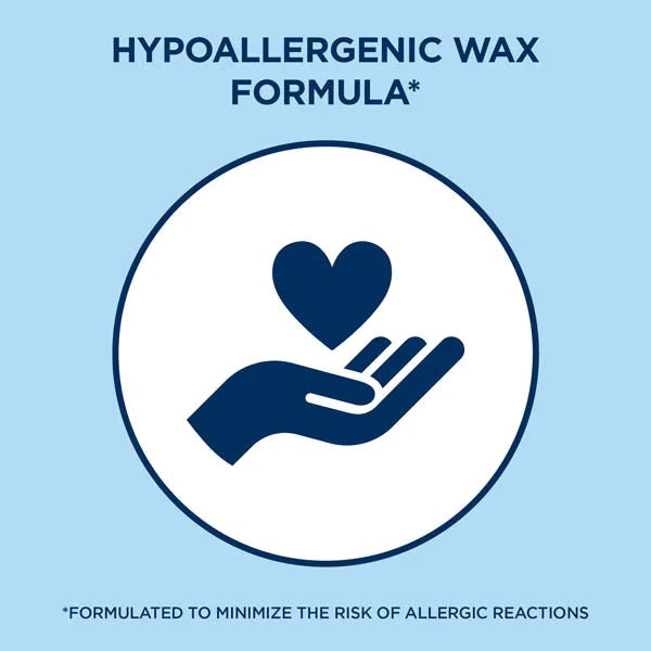 Wax strips: Triethylene Glycol Rosinate, Glyceryl Rosinate, Silica, Polyethylene, Prunusamygdalus Dulcis (Sweet Almond) Oil, Tocopheryl Acetate, Parfum, BHA.
