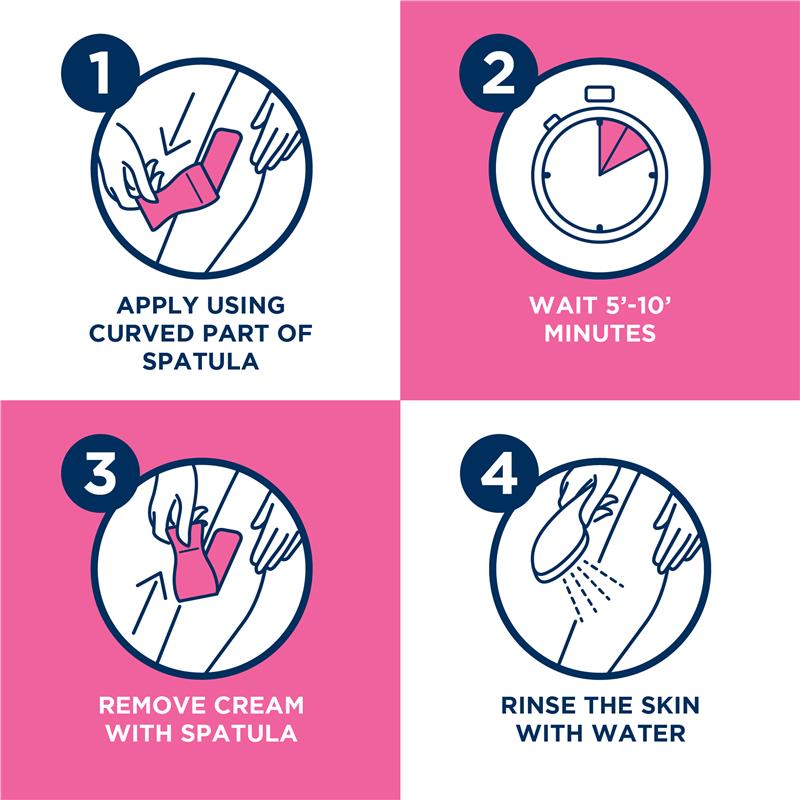 - Do not use on varicose veins, scars, moles, spotty, broken, irritated, sunburnt skin or on skin that has had an adverse reaction to hair removal creams in the past. Always leave 72 hours between hair removal sessions.