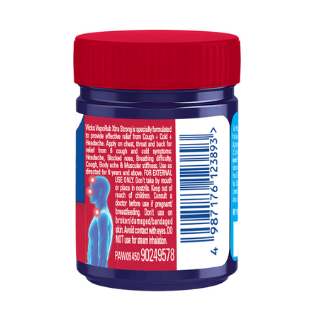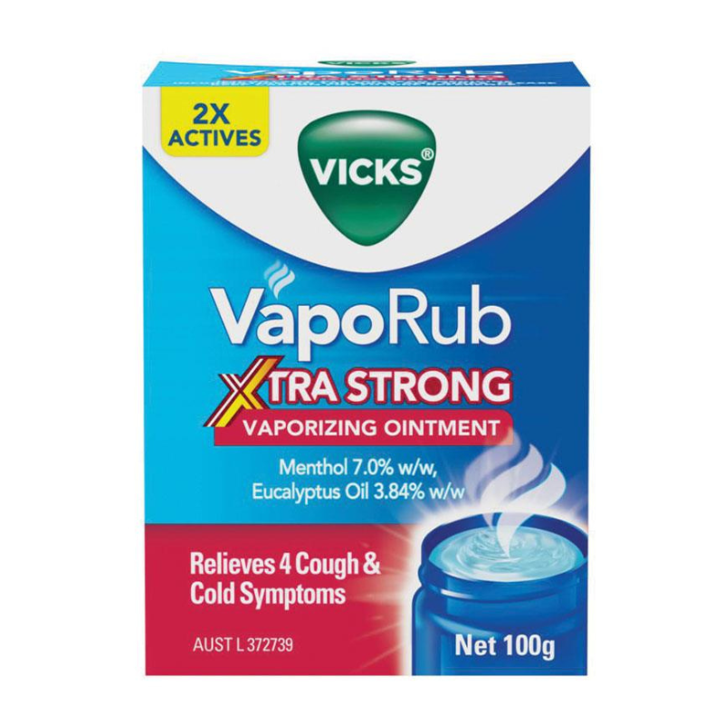 With 2X Menthol and Eucalyptus Oil, Vicks VapoRub Xtra Strong has the power to knock out your family’s tough cold symptoms – headache, nasal congestion, cough, and muscle aches, just when the family needs it most.