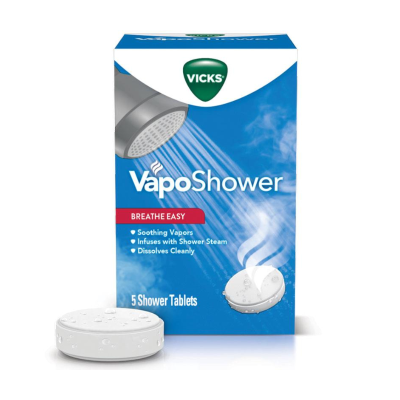 • Vicks VapoShower comes in easy-to-use format that dissolves cleanly in the shower.