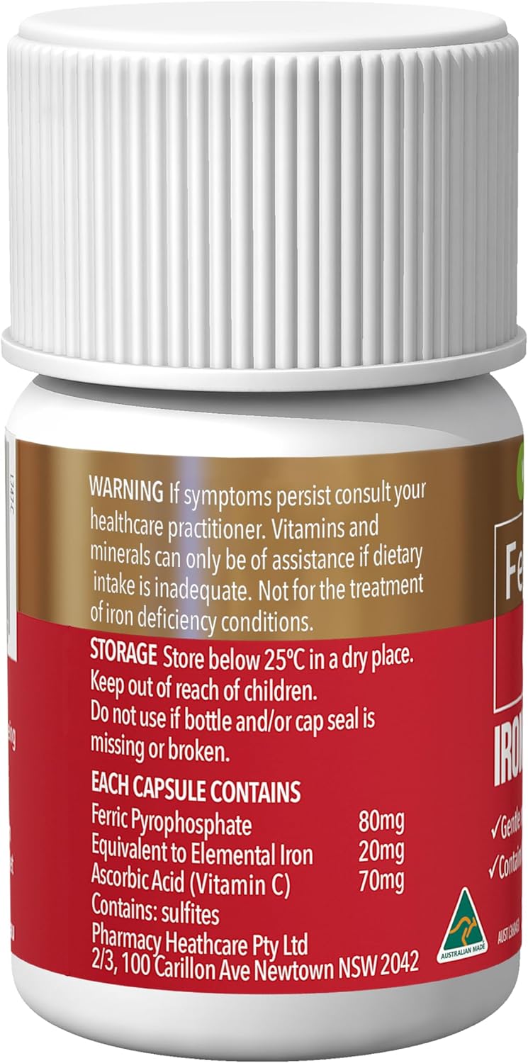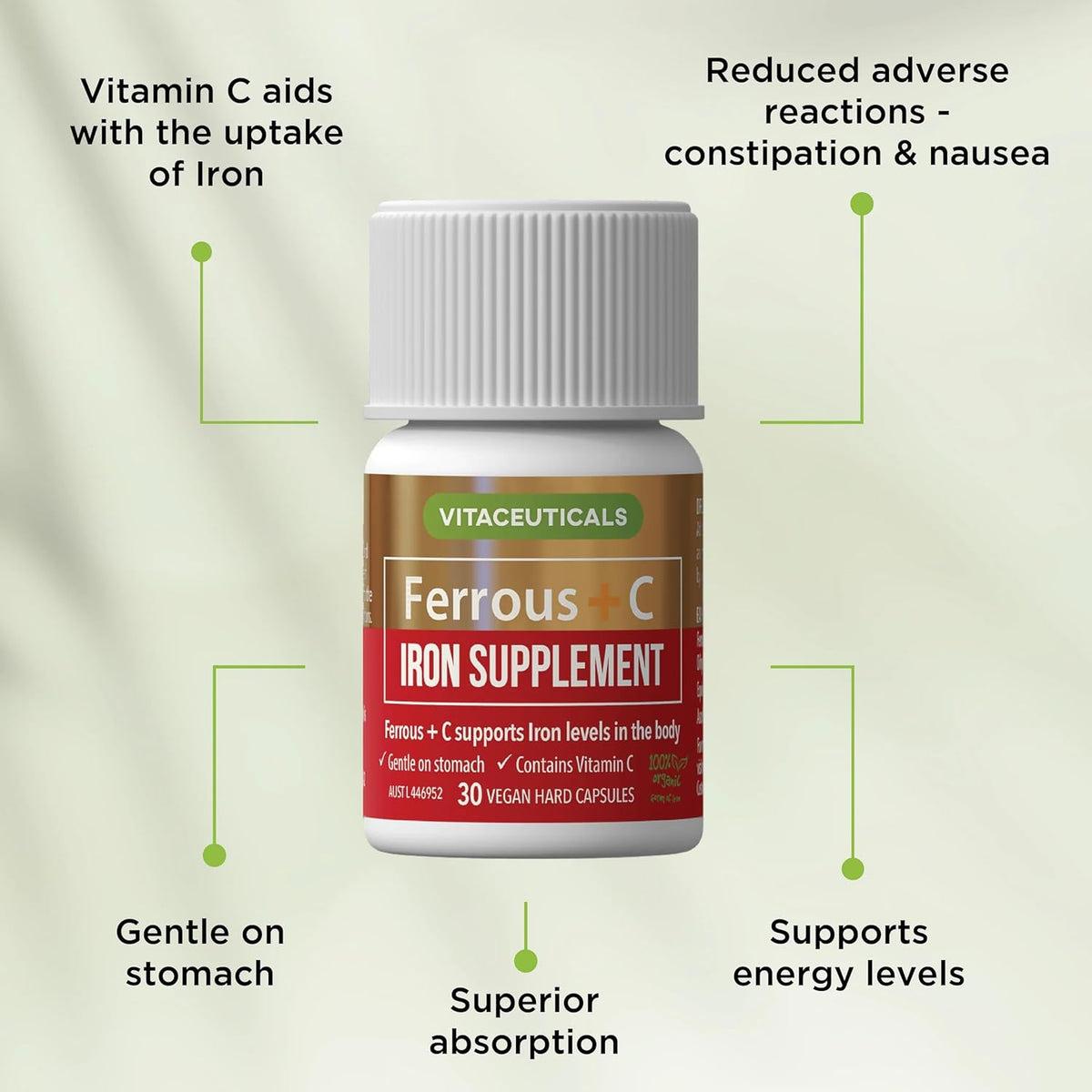Vitaceuticals Ferrous + C Iron Supplement 30 Hard Capsules