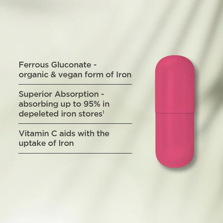 It contains Ferrous Gluconate, which is a readily absorbed, organic form of Iron.