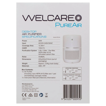 Welcare PureAir air purifiers remove very small particles (PM 2.5) from smoke, dust, bacteria, and other pollutants making the purifiers perfect for those who have pets, suffer from allergies, bushfires, or pollution-prone areas. The purifiers are also ideal for anyone who is looking to achieve a fresh, clean, and healthy bedroom or office environment.
