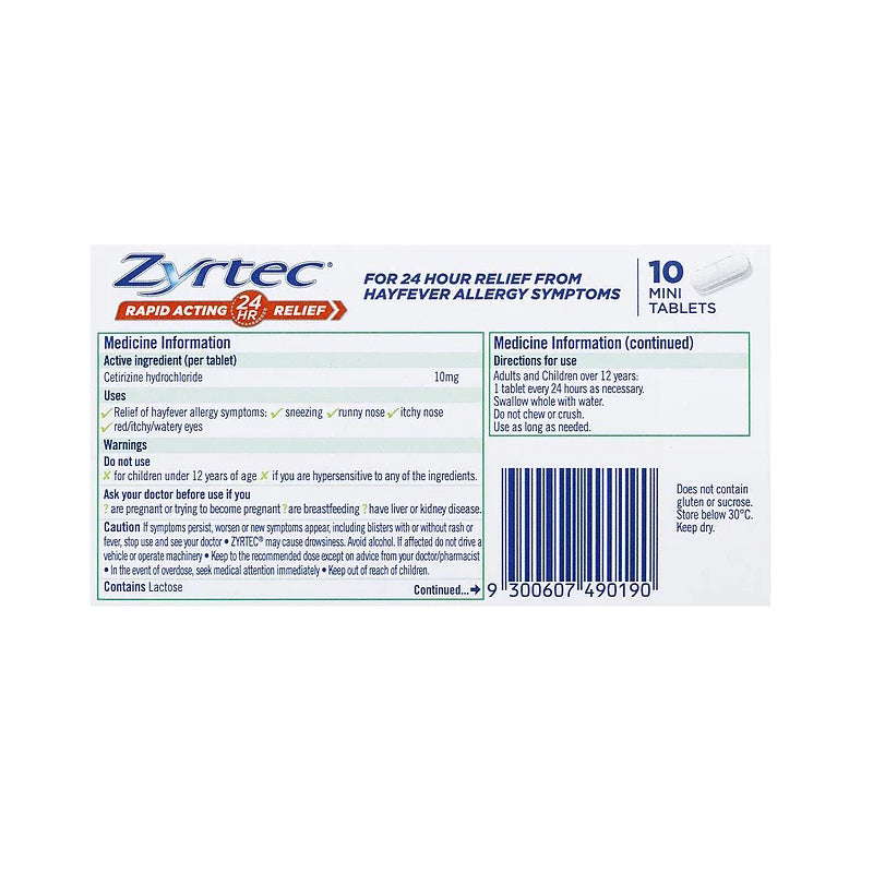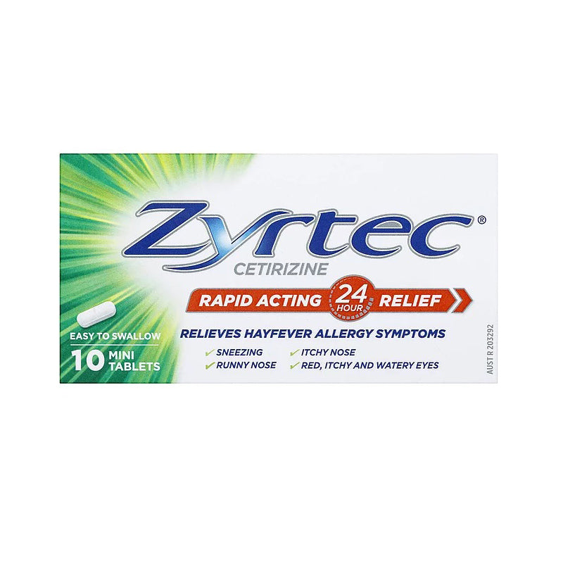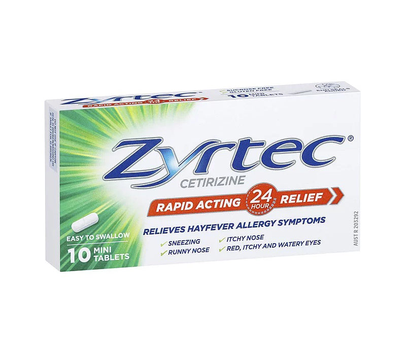 Zyrtec Cetirizine Rapid Acting Relief is an allergy & hayfever tablet that relieves hayfever & allergy symptoms. Zyrtec hayfever and allergy tablets are rapid acting and provide relief for 24 hours.