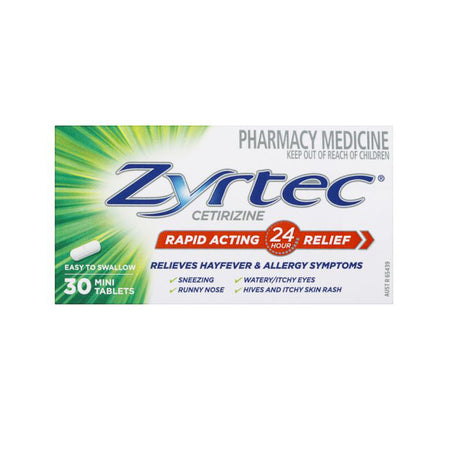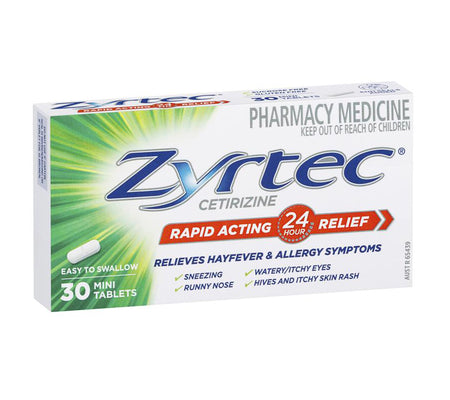 Zyrtec Cetirizine Rapid Acting Allergy & Hayfever Relief 30 Tablets